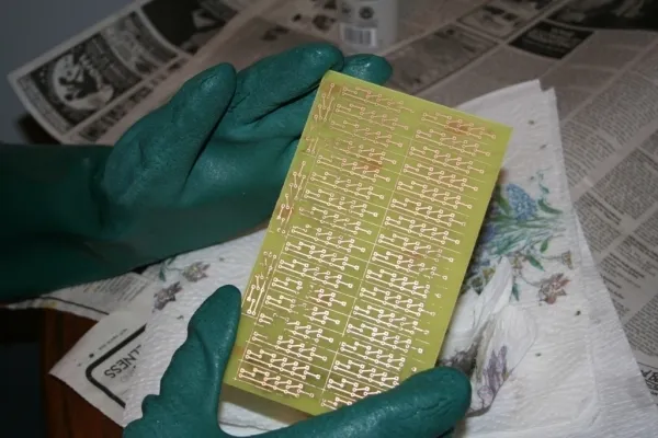For the last stage of this project we wanted more. The bug form was a nice personalized object, but we wanted to see what it was like to have a lot of these lights embedded in a space. In order to do this we would need mass production--on a small scale. We decided to print our own circuit boards to make construction easier as well as making the final project more durable. A video of our first attempt at circuit board fabrication can be found here, and a more complete write-up of this stage of the project, along with a how-to can be found here.