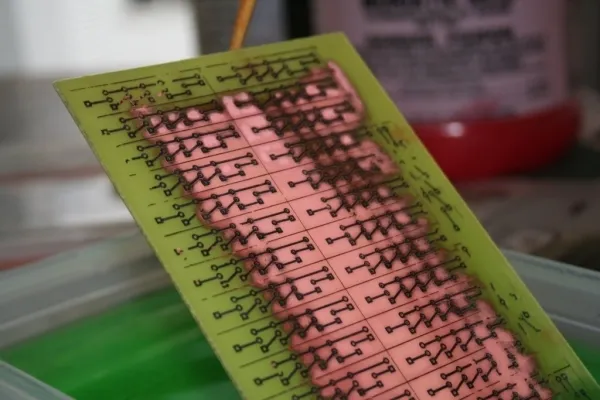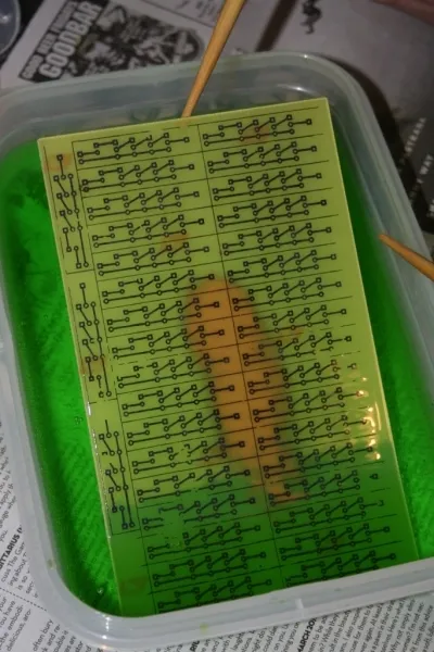 For the last stage of this project we wanted more. The bug form was a nice personalized object, but we wanted to see what it was like to have a lot of these lights embedded in a space. In order to do this we would need mass production--on a small scale. We decided to print our own circuit boards to make construction easier as well as making the final project more durable. A video of our first attempt at circuit board fabrication can be found here, and a more complete write-up of this stage of the project, along with a how-to can be found here.